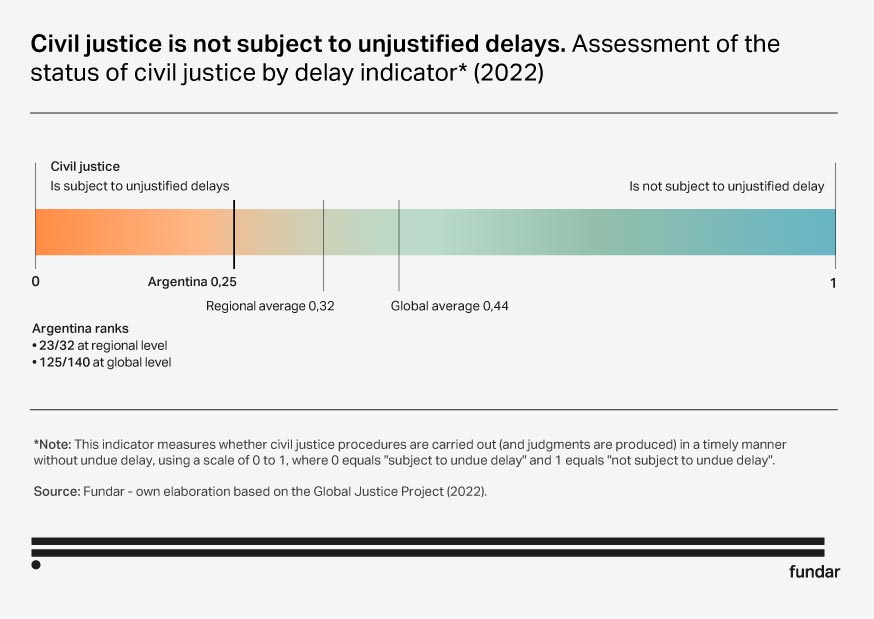 The sentiment data are consistent with the Rule of Law Index, which shows concerning results in terms of delays and inefficiency of the judicial system, including both civil and criminal proceedings. Courts show low levels of productivity and resolution rates and average case duration well above reasonable standards.