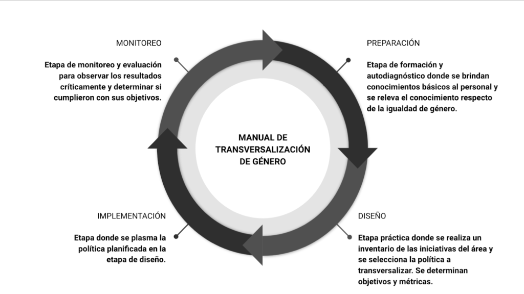 To achieve this, it is divided into three sections. The first provides a definition of gender mainstreaming and a justification of the gender approach. It includes references to the regulatory framework and the strategic planning guidelines set out in the programs created by the Ministry of Women, Gender, and Diversity. The second part is organized around the stages of the public policy cycle, which it breaks down to provide guidance on gender mainstreaming. The third part puts forward a series of management tools that may be helpful for implementing different aspects of budget and information management and analyzing public policies.