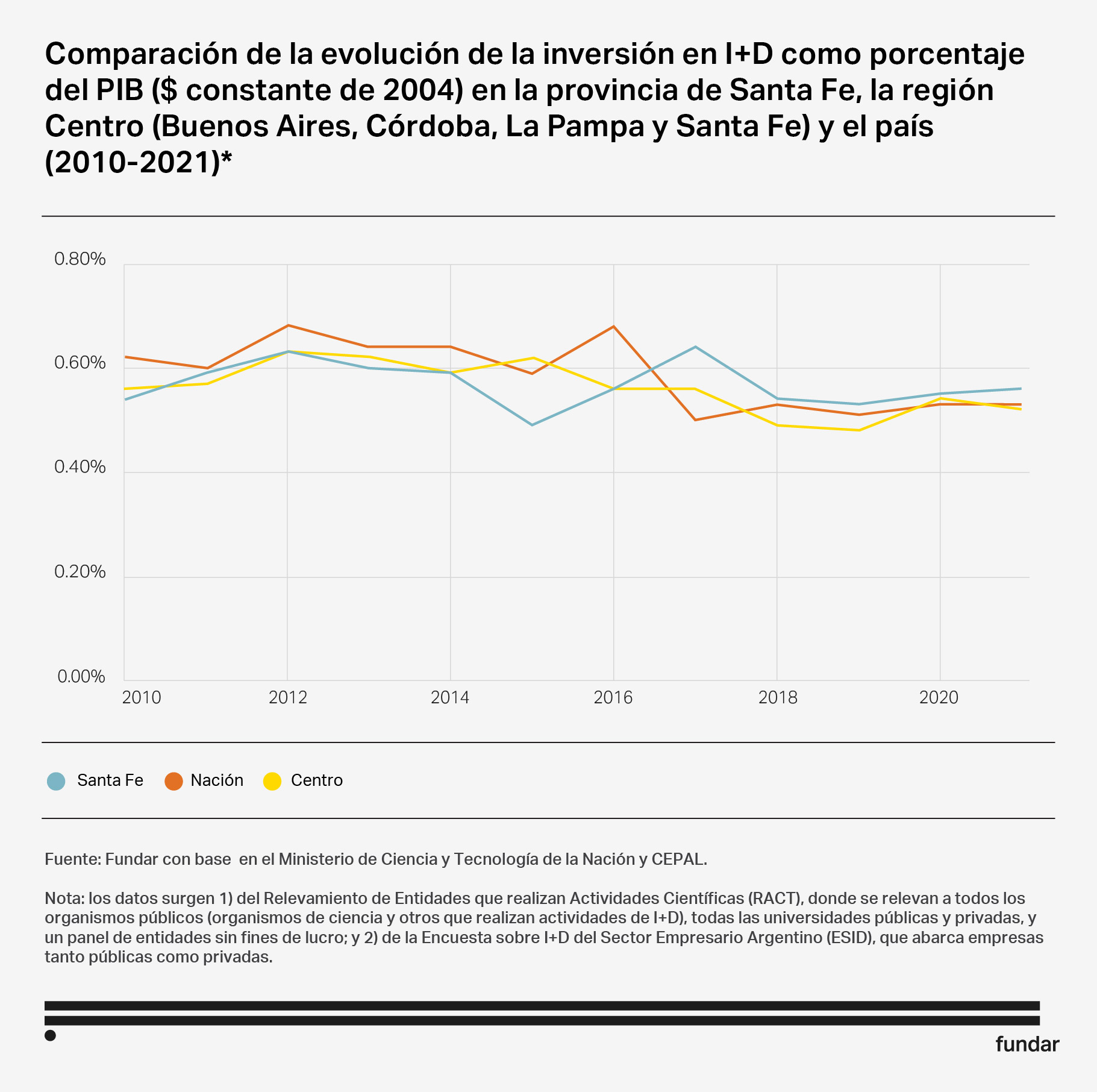 Las políticas de promoción de la biotecnología jugaron un rol importante en el creciente dinamismo del ecosistema de empresas biotecnológicas de la provincia. En el decenio que va entre 2008 y 2018 en I+D en Santa Fe, alcanzó una inversión anual promedio del 0,7% del producto bruto geográfico de Santa Fe. Si bien no se llegó a alcanzar el objetivo del 1% promovido por el propio sistema científico y tecnológico nacional, la provincia estuvo durante todo ese período 0,1 puntos porcentuales por encima del promedio nacional.